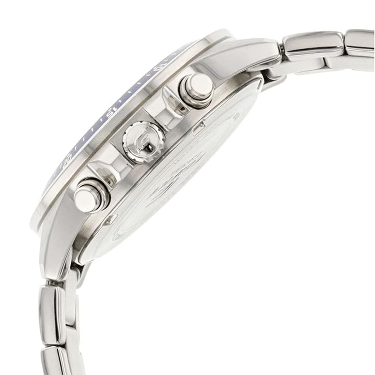 Este modelo de la colección Edifice ofrece un diseño deportivo pero sobrio, ideal para quienes quieren un cronógrafo robusto para el día a día sin perder elegancia. Su caja de acero inoxidable y el brazalete metálico le dan un aire serio, a la vez que su dial con detalles en rojo y azul añade un toque de dinamismo. Es un reloj versátil: sirve tanto para un uso casual o diario como para un entorno semi-formal.