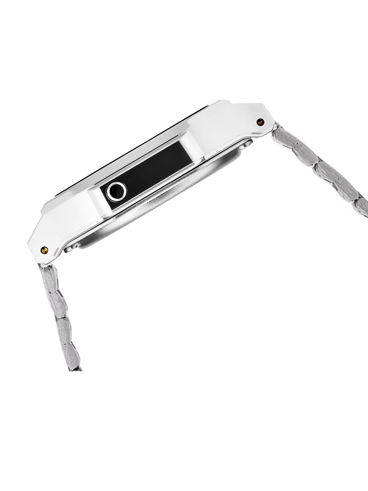 El Casio A164WA-1V es un reloj digital clásico de estilo vintage con diseño simple y funcional. Mantiene la estética retro de los modelos Vintage de Casio, con pantalla digital clara y funciones básicas pero útiles para el día a día: hora, día, fecha, cronómetro, alarma diaria, señal horaria y calendario automático. Su brazalete metálico auto-ajustable y construcción ligera lo hacen cómodo y versátil tanto para uso casual como cotidiano.