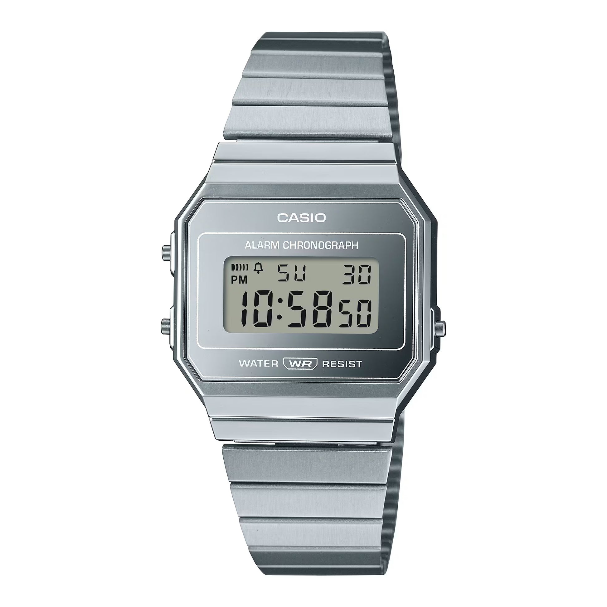 Los A700WE son algunos de los relojes digitales más delgados y minimalistas jamás fabricados por Casio. Representan la evolución refinada del clásico A158, manteniendo el ADN vintage pero con un perfil ultraplano, líneas limpias y una estética más elegante. Es un reloj ligero, discreto y extremadamente cómodo, pensado para quien busca un diseño atemporal con funciones básicas y fiabilidad absoluta. Ideal como reloj diario, reloj de vestir informal o pieza icónica de estilo retro moderno.